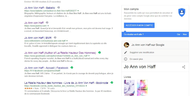 En bas se trouve le bouton « revendiquer cette fiche info » (avant c’était « Gérez-vous la présence en ligne de Jo Ann von Haff ? »). Exemple avec Suzanne Roy, ma jumelle cosmique.)