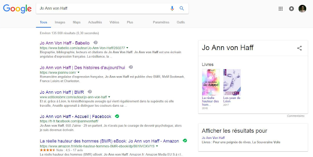 En juillet, je me suis googlée pour m’assurer que mon site était au moins dans la première page de recherches de Google. C’est bien beau d’avoir un site, mais si personne ne le voit quand on fait une recherche sur nous, à quoi bon, n’est-ce pas ?